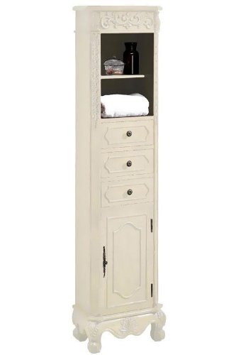 Provide enough space for your washcloths and towels with this elegant bathroom cabinet. The solid wood and wood veneer construction ensures durability while the lustrous finish adds graceful style. Complete your bath decor today; buy now.Intricate detailing brings a look of luxury.Decorative feet add a finishing touch. Actual size is 17.5"W.../ 17.5"w Standard Linen Storage Cabinet, 17.5"W, IVORY / Room Cabinet